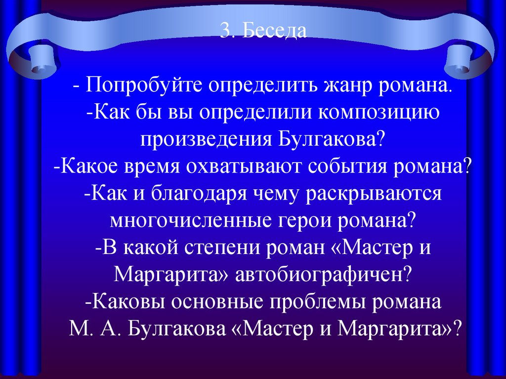3. Беседа- Попробуйте определить жанр романа.