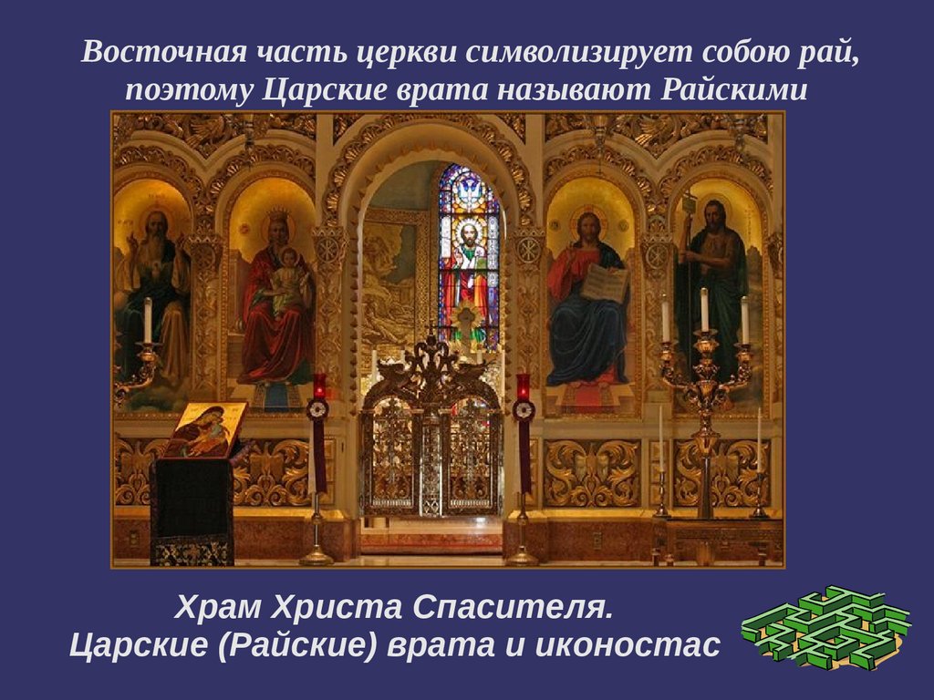 Восточная часть церкви символизирует собою рай,поэтому Царские врата называют Райскими