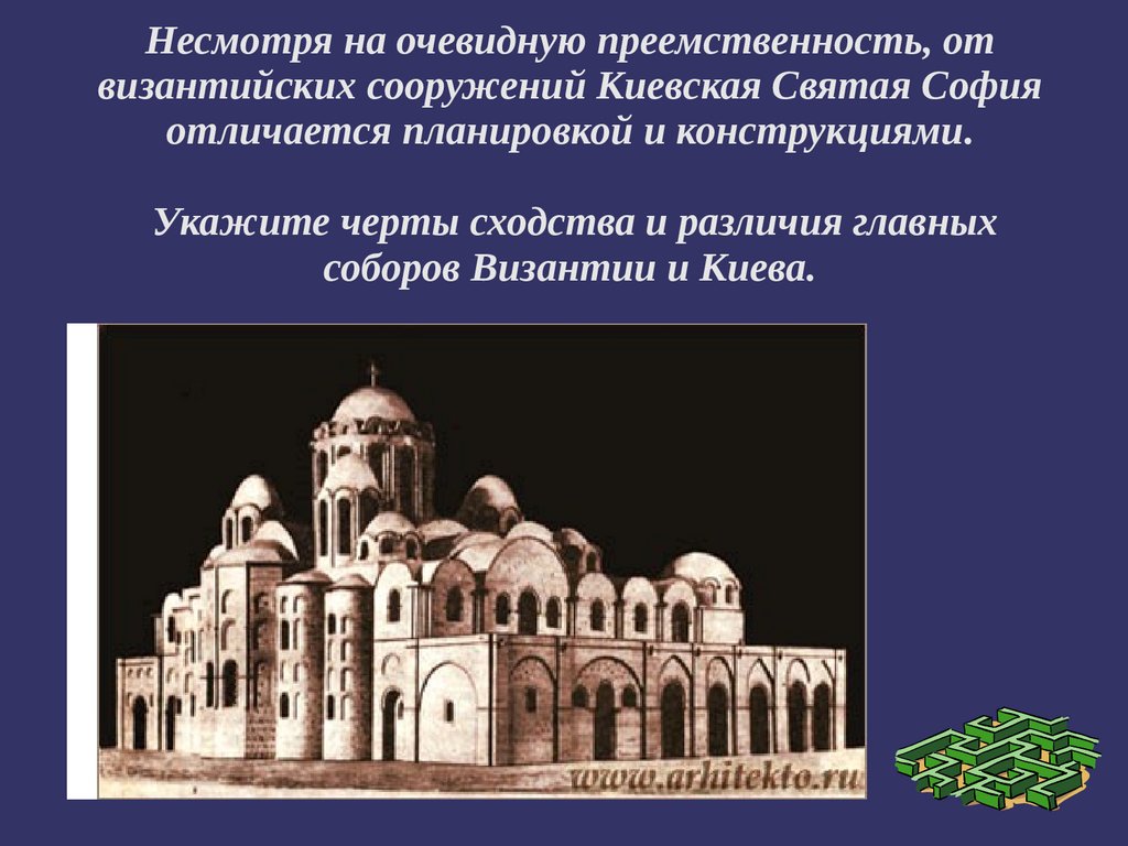 Несмотря на очевидную преемственность, отвизантийских сооружений Киевская Святая София