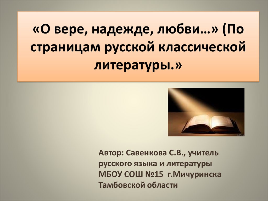 О вере, надежде, любви… По страницам русской классической литературы