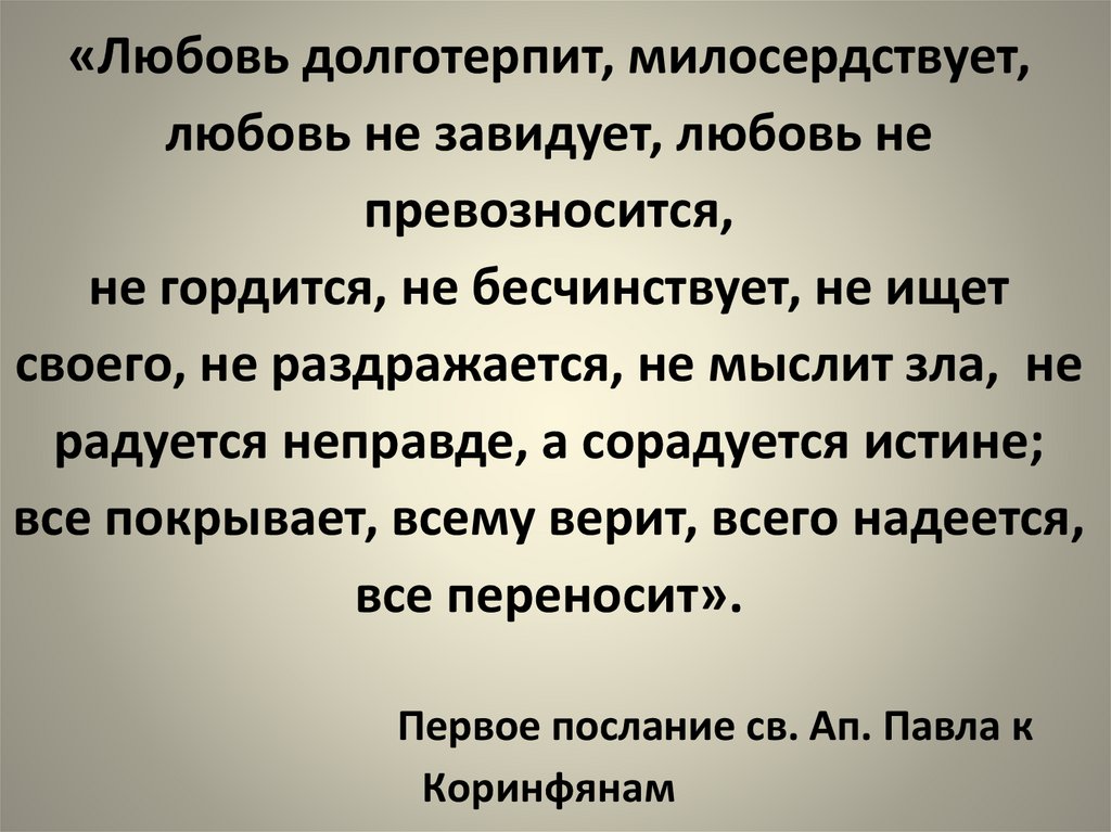 «Любовь долготерпит, милосердствует,любовь не завидует, любовь не