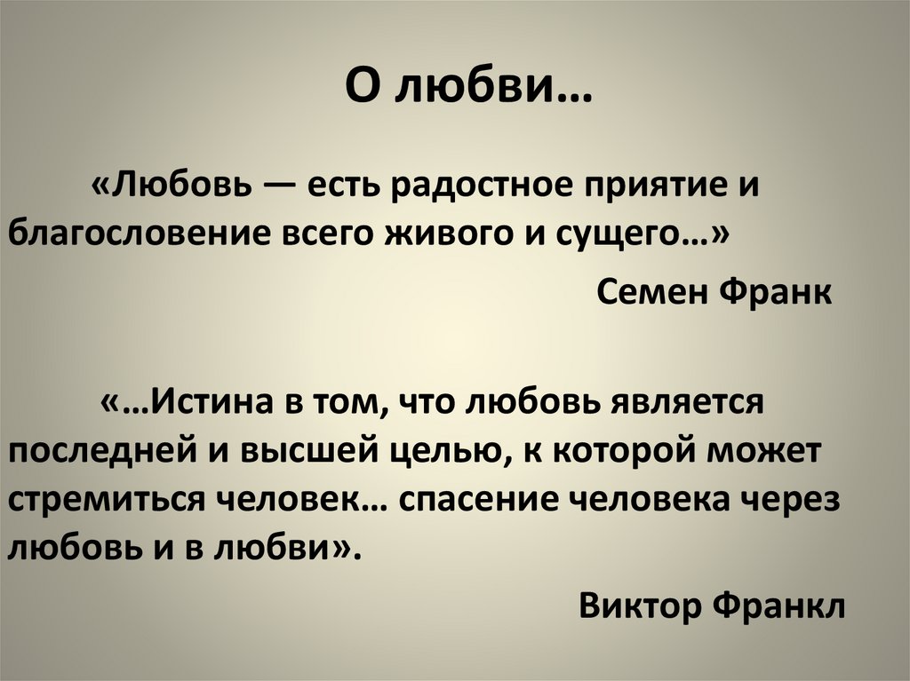 О любви…«Любовь — есть радостное приятие и
