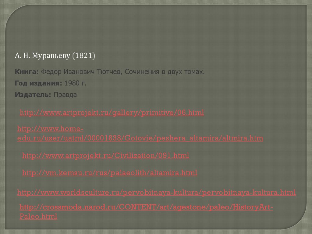 А. Н. Муравьеву (1821)Книга: Федор Иванович Тютчев, Сочинения в двух томах.