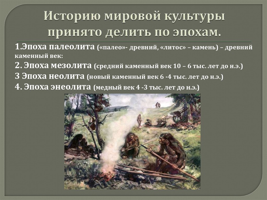1.Эпоха палеолита («палео»- древний, «литос» – камень) – древнийкаменный век: