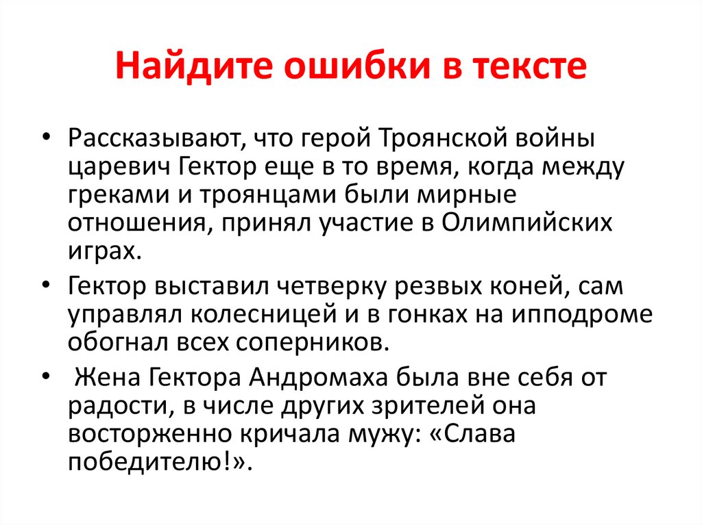 Найдите ошибки в тексте• Рассказывают, что герой Троянской войны