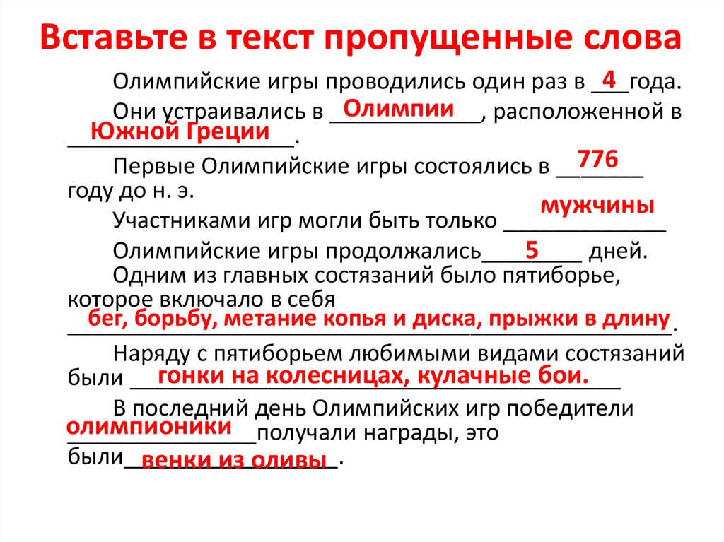 Олимпийские игры в древности. Проверочная работа