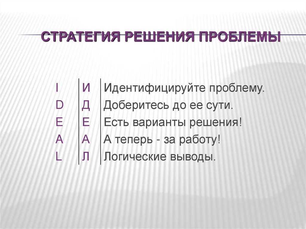 СТРАТЕГИЯ РЕШЕНИЯ ПРОБЛЕМЫI