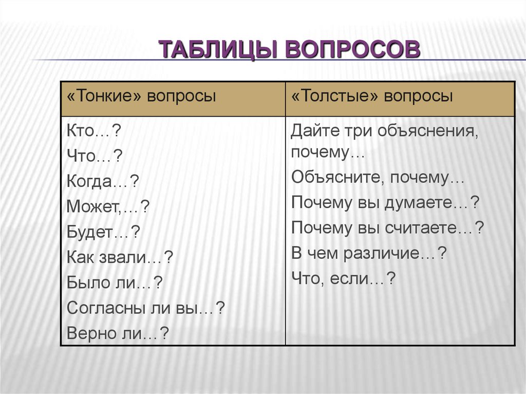 ТАБЛИЦЫ ВОПРОСОВ«Тонкие» вопросы