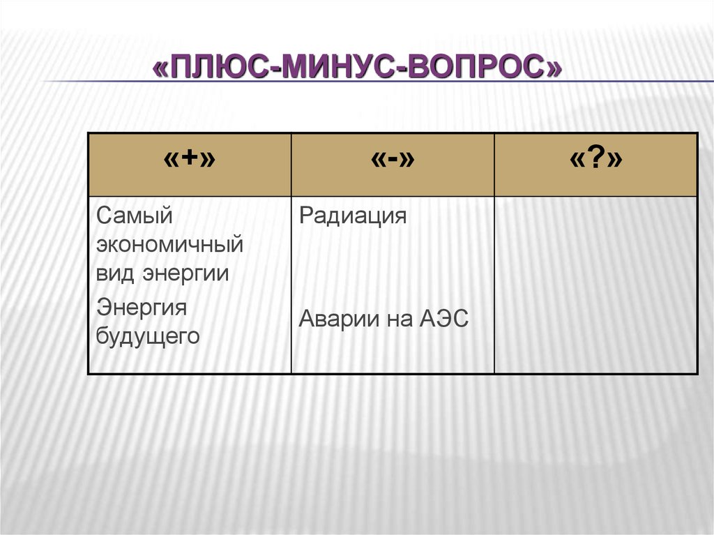 «ПЛЮС-МИНУС-ВОПРОС»«+»