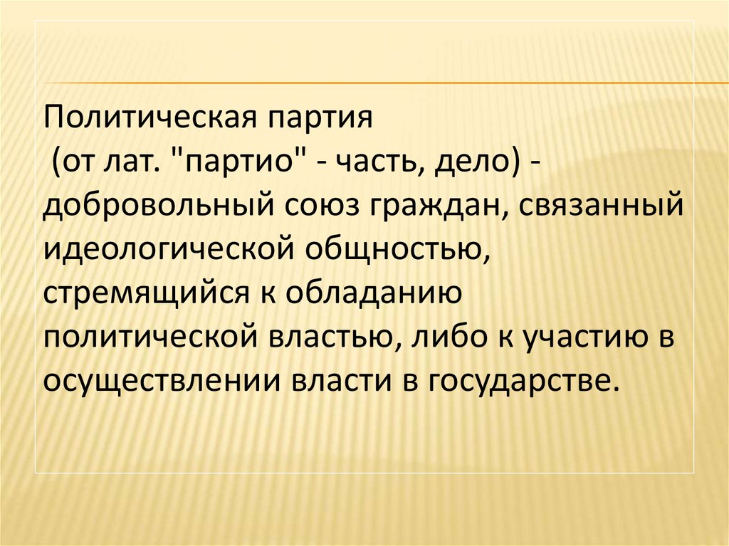 Политическая партия(от лат. "партио" - часть, дело) добровольный союз граждан, связанный