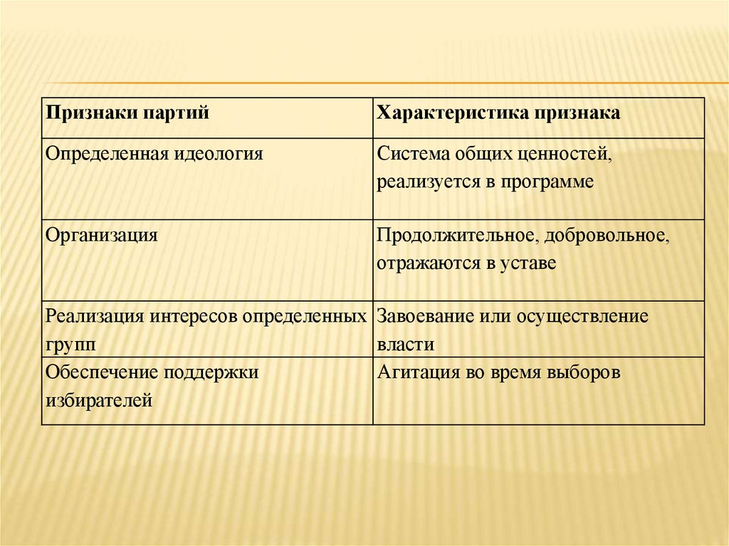 Признаки партийХарактеристика признака