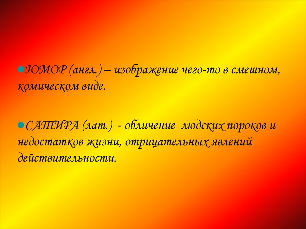 ЮМОР (англ.) – изображение чего-то в смешном,комическом виде.