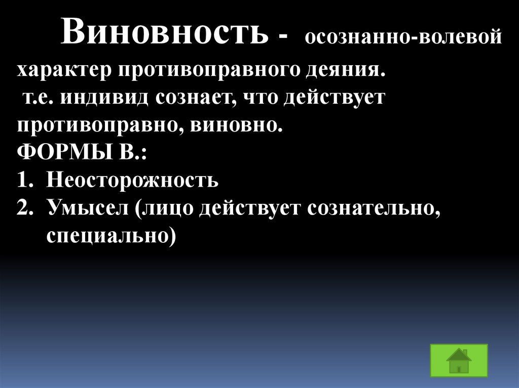 Виновность -осознанно-волевой