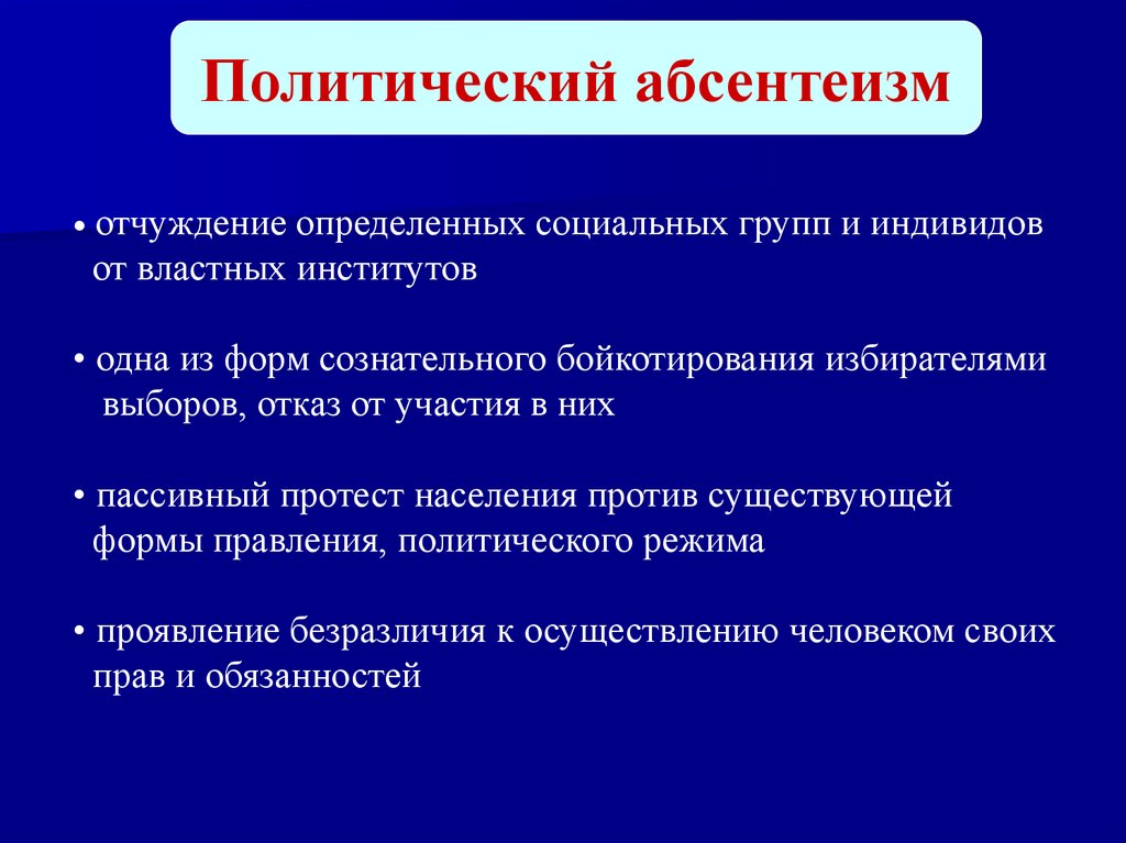 Политический абсентеизмотчуждение определенных социальных групп и индивидов