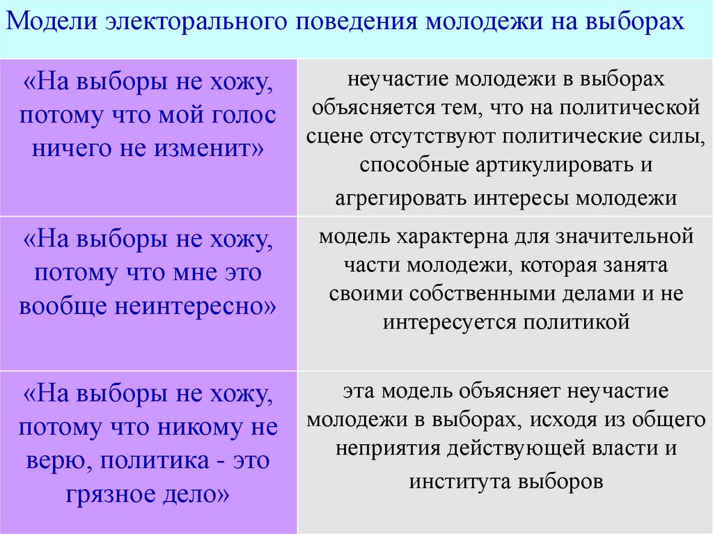 Модели электорального поведения молодежи на выборах«На выборы не хожу,