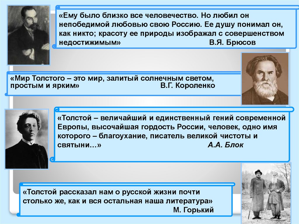 «Ему было близко все человечество. Но любил оннепобедимой любовью свою Россию. Ее душу понимал он,