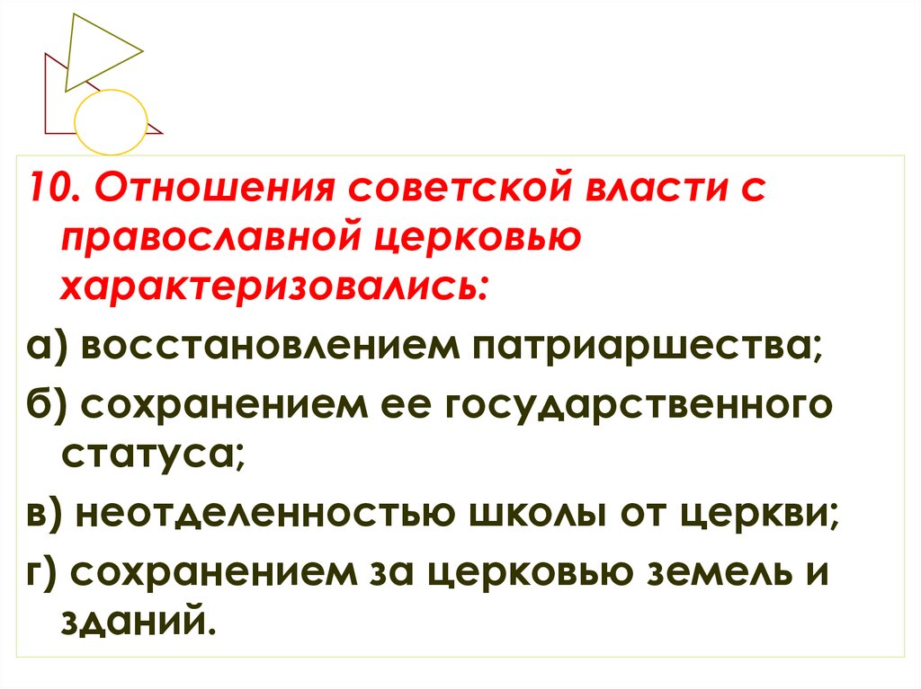 10. Отношения советской власти справославной церковью