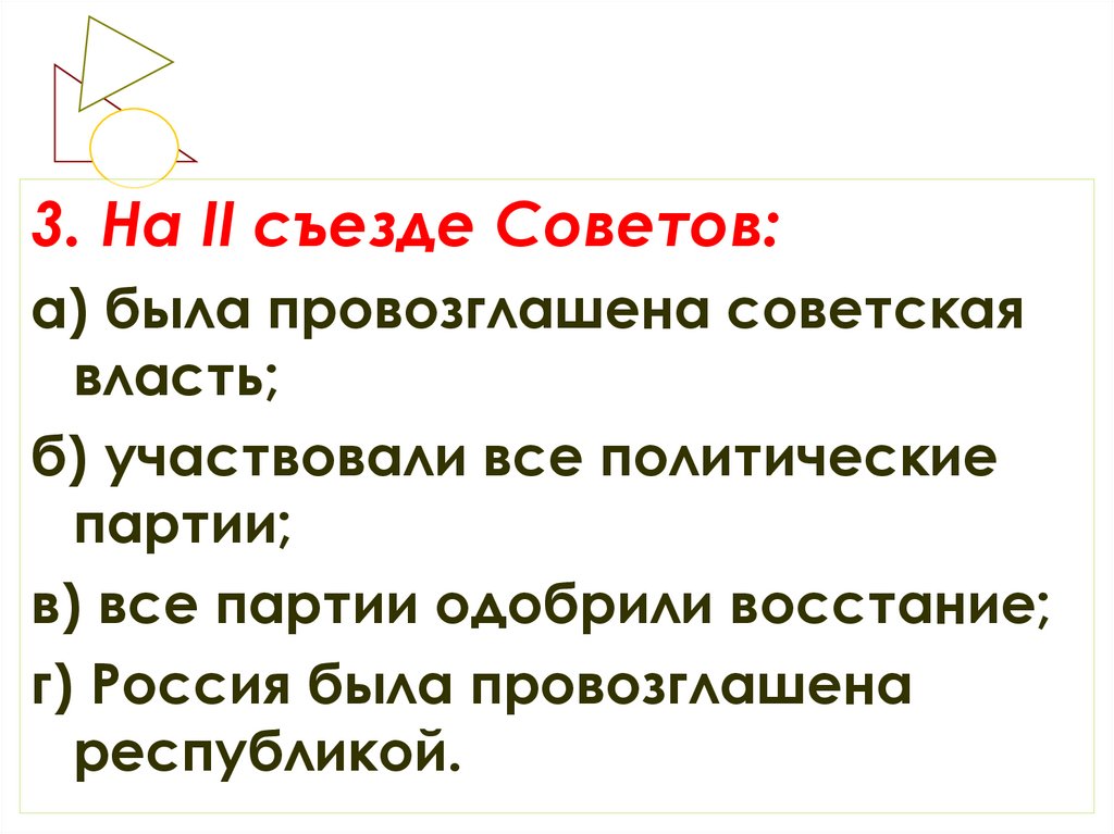 3. На II съезде Советов:а) была провозглашена советская