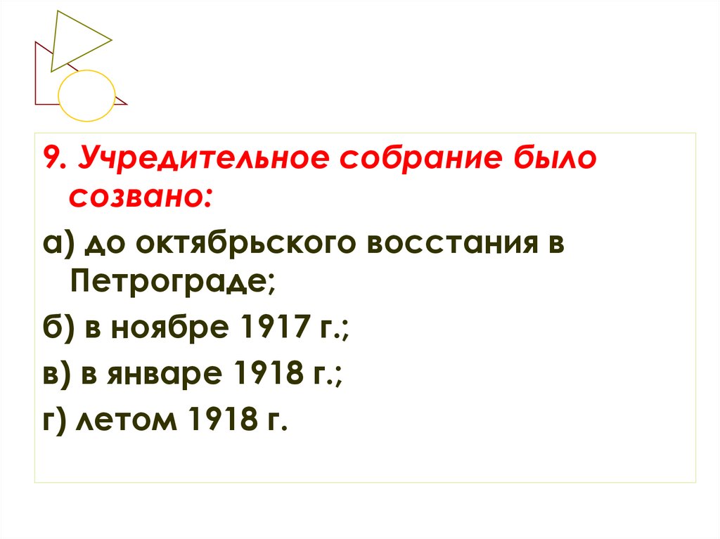 9. Учредительное собрание былосозвано: