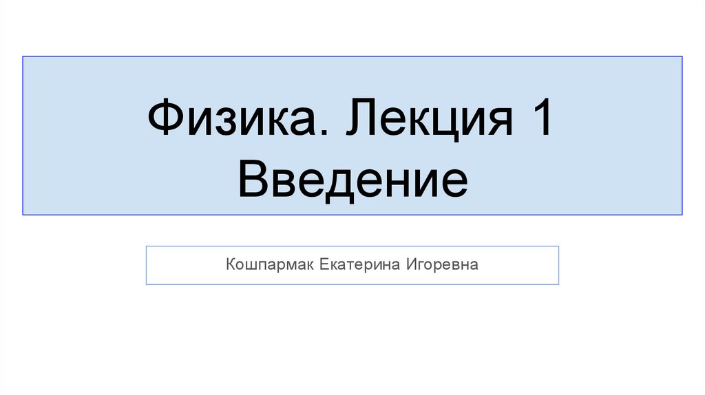 Физика. Лекция 1Введение