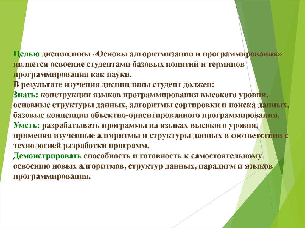 Целью дисциплины «Основы алгоритмизации и программирования»является освоение студентами базовых понятий и терминов