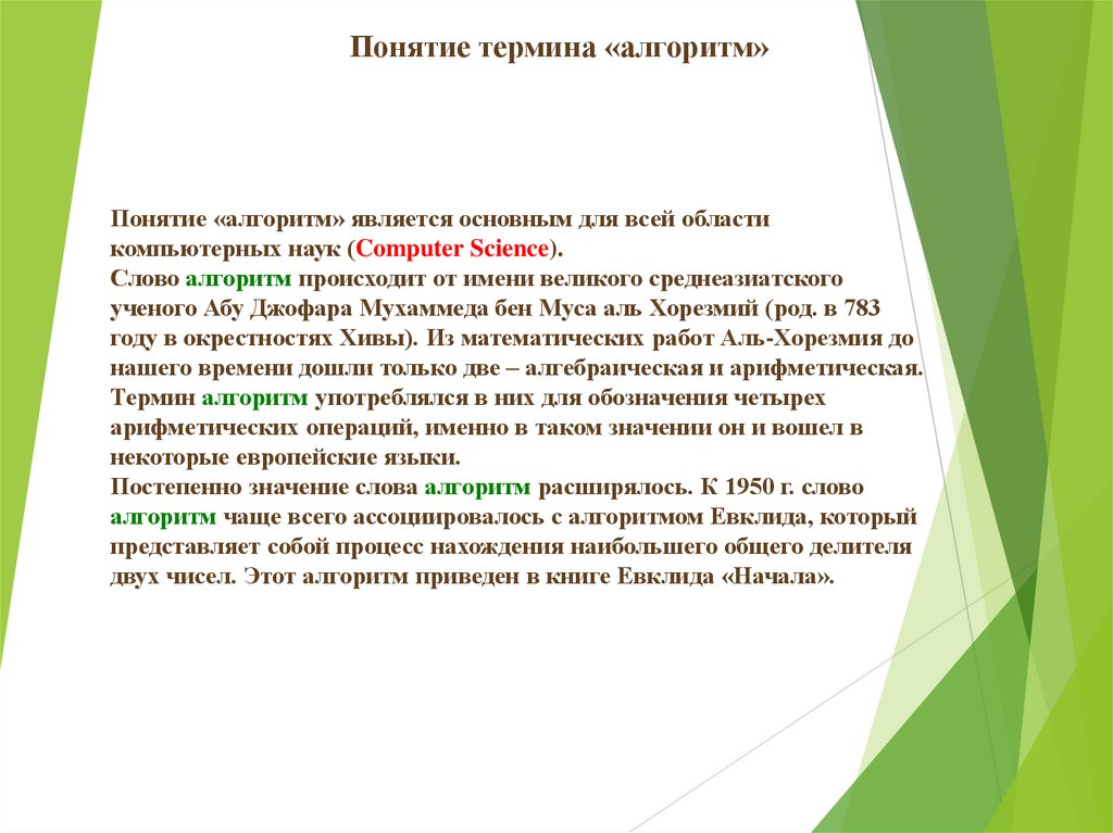 Понятие термина «алгоритм»Понятие «алгоритм» является основным для всей области