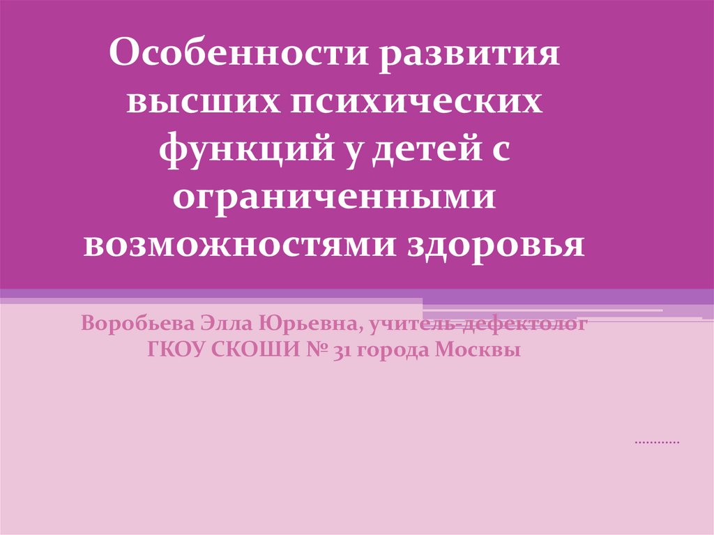 Особенности развития высших психических функций у детей с ограниченными возможностями здоровья