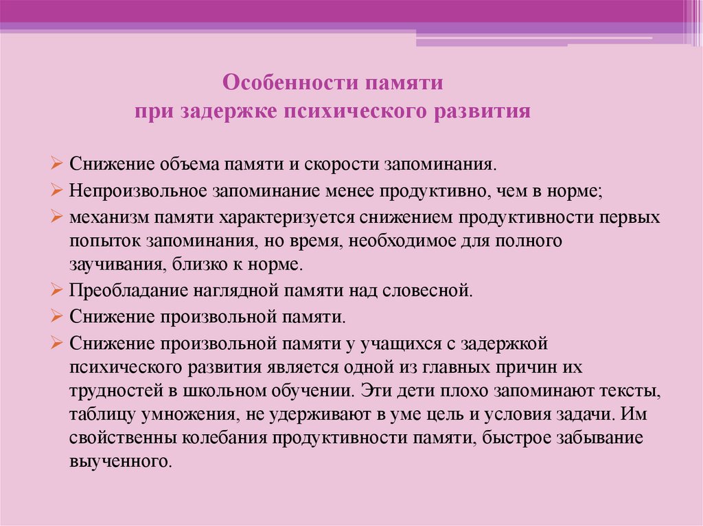 Особенности памятипри задержке психического развития