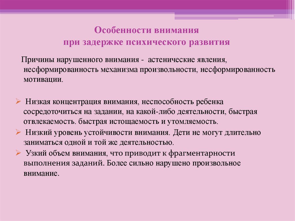 Особенности вниманияпри задержке психического развития