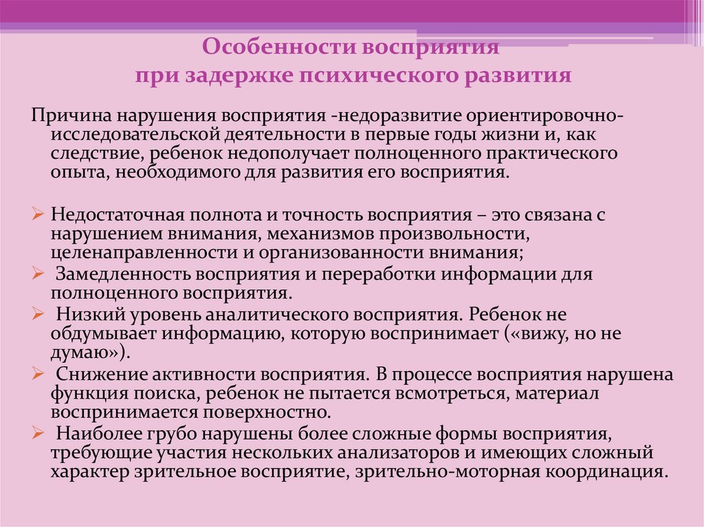 Особенности восприятияпри задержке психического развития