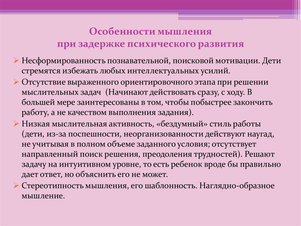 Особенности мышленияпри задержке психического развития