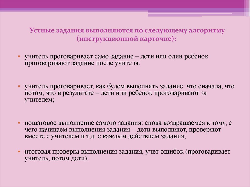 Устные задания выполняются по следующему алгоритму(инструкционной карточке):