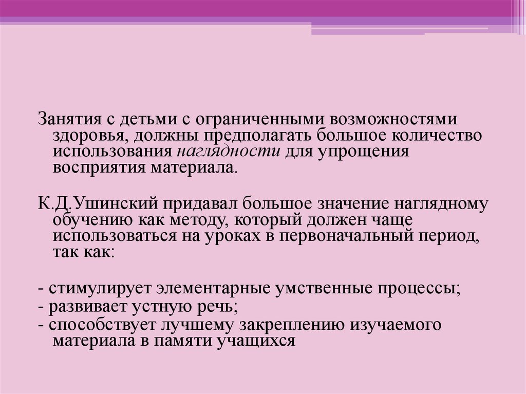 К.Д.Ушинский придавал большое значение наглядному