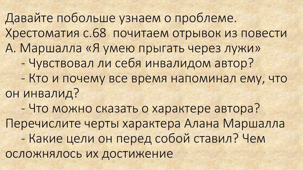 Давайте побольше узнаем о проблеме.Хрестоматия с.68 почитаем отрывок из повести