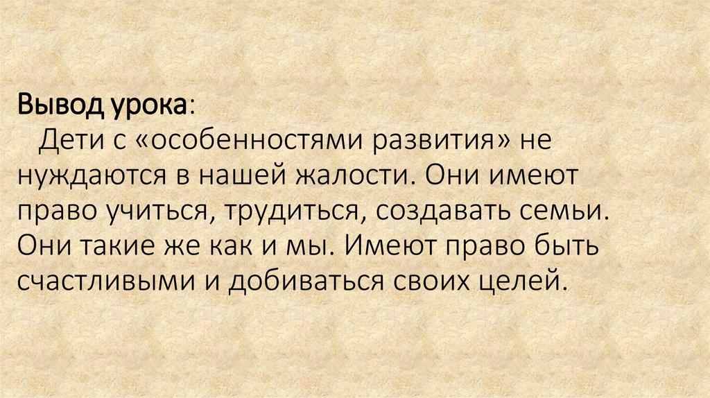 Вывод урока:Дети с «особенностями развития» не