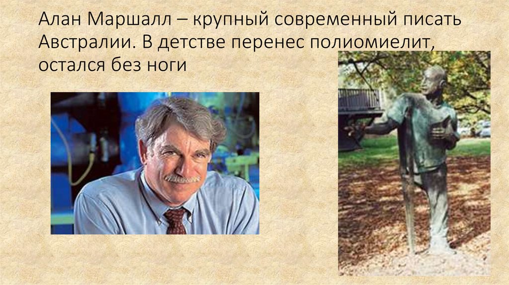 Алан Маршалл – крупный современный писатьАвстралии. В детстве перенес полиомиелит,