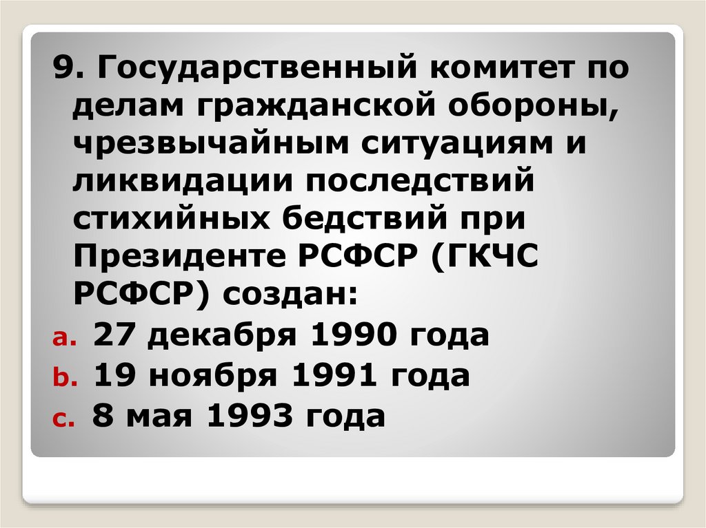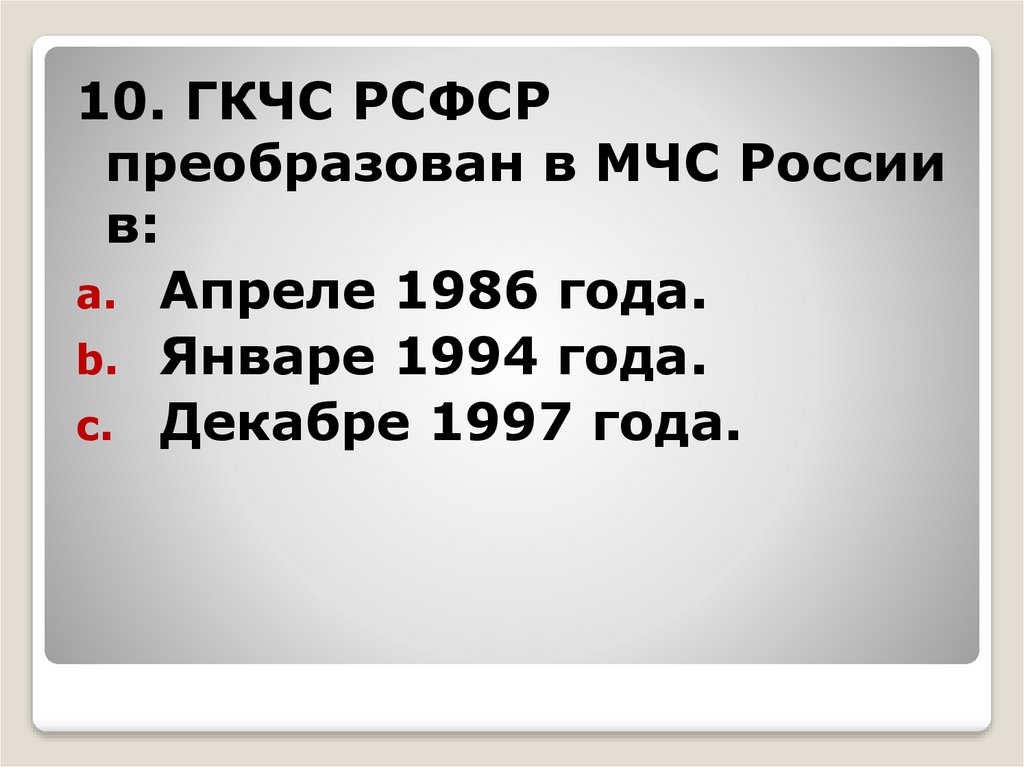 10. ГКЧС РСФСРпреобразован в МЧС России
