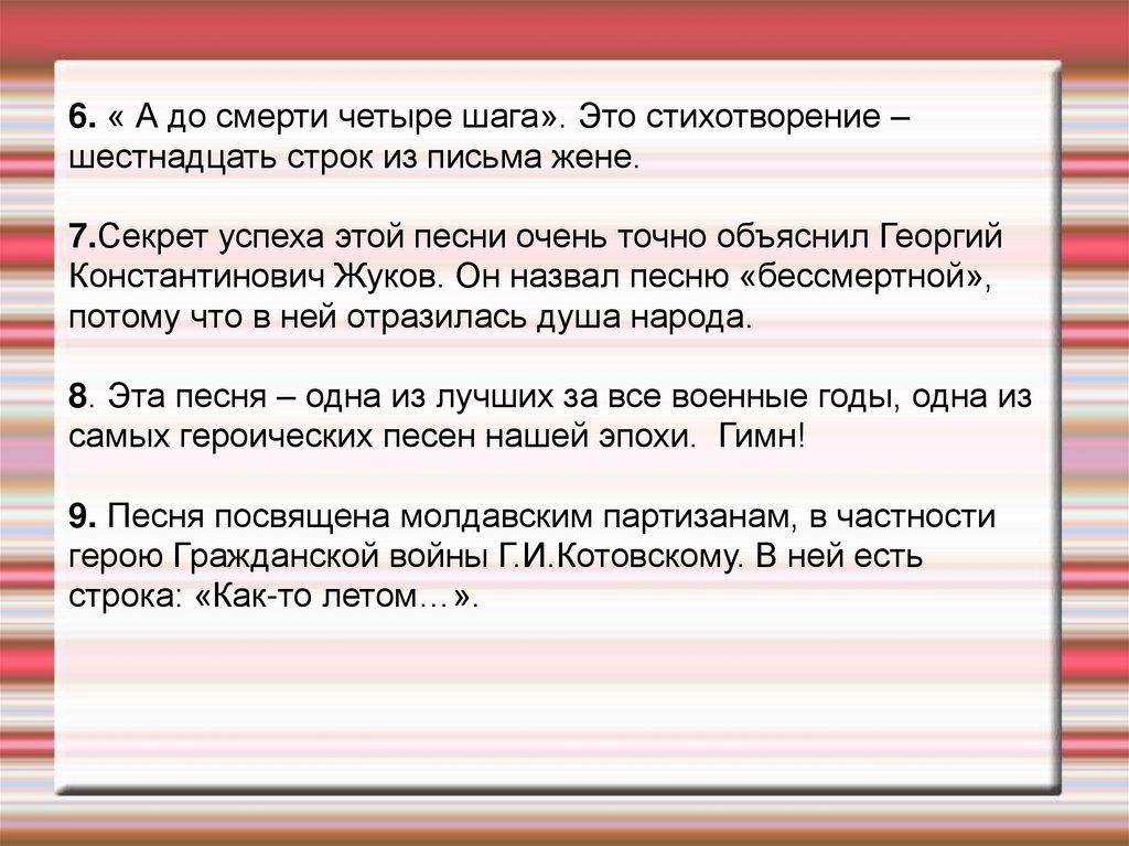6. « А до смерти четыре шага». Это стихотворение –шестнадцать строк из письма жене.