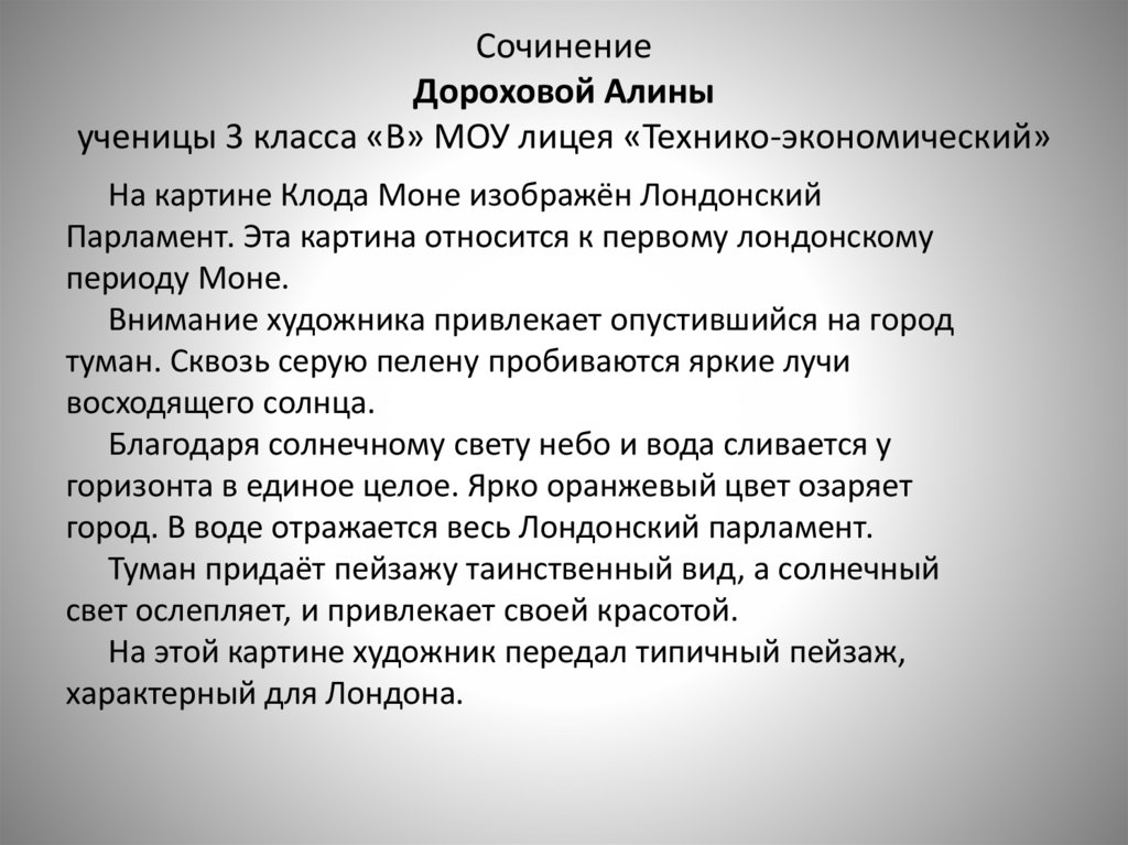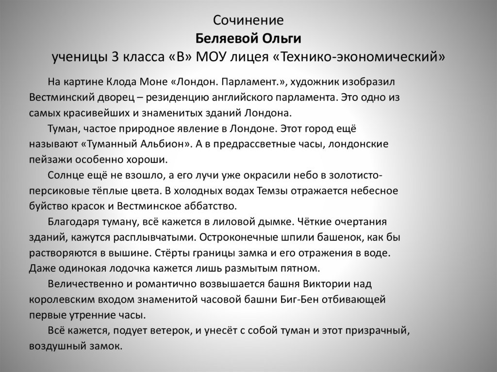 Сочинение по картине «Лондон. Парламент»