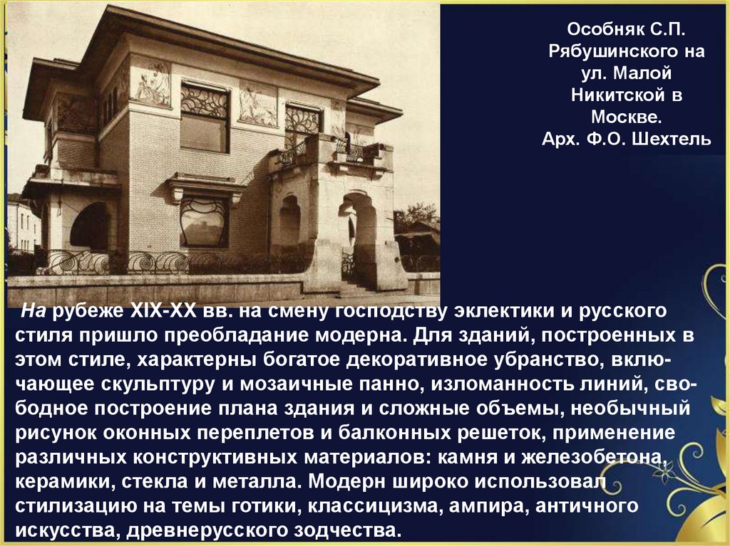 На рубеже XIX-ХХ вв. на смену господству эклектики и русского