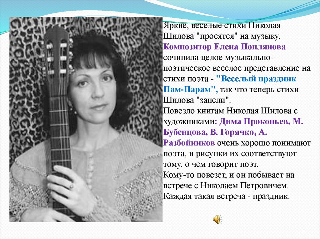Яркие, веселые стихи НиколаяШилова "просятся" на музыку.