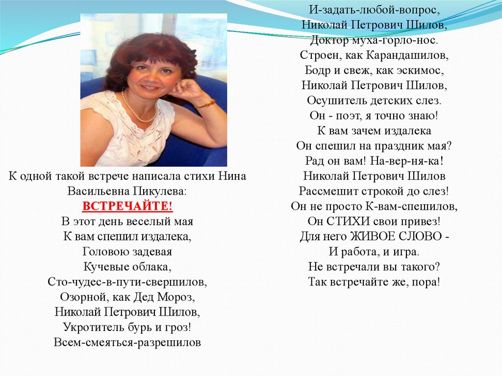 К одной такой встрече написала стихи НинаВасильевна Пикулева: