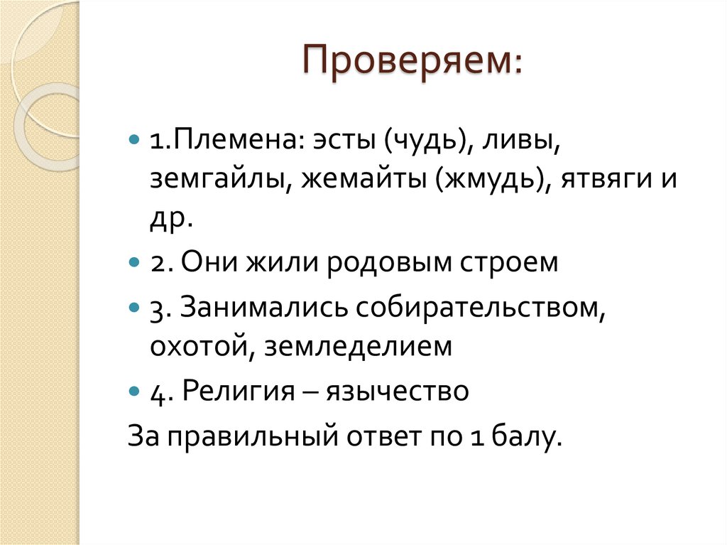 Проверяем:1.Племена: эсты (чудь), ливы,