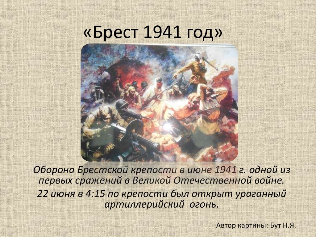«Брест 1941 год»Оборона Брестской крепости в июне 1941 г. одной из