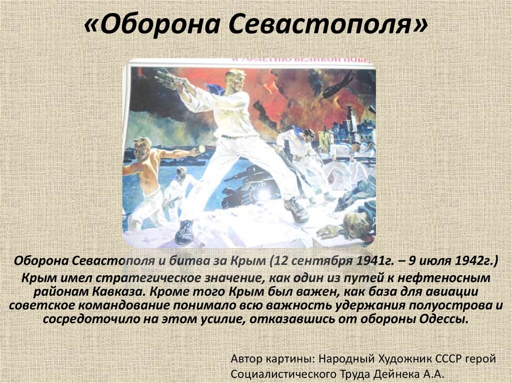 «Оборона Севастополя»Оборона Севастополя и битва за Крым (12 сентября 1941г. – 9 июля 1942г.)