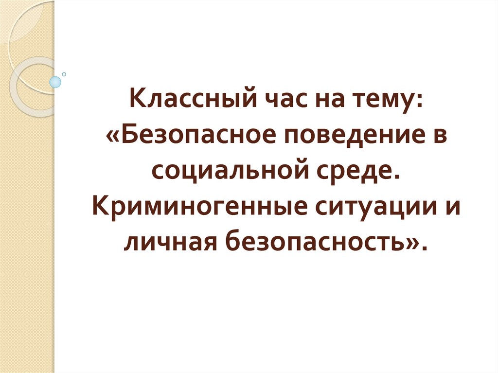 Безопасное поведение в социальной среде. Криминогенные ситуации и личная безопасность