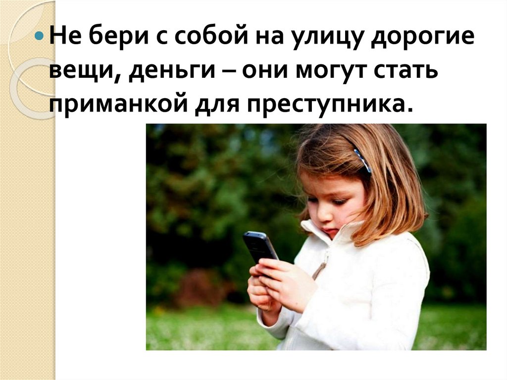 Не бери с собой на улицу дорогиевещи, деньги – они могут стать
