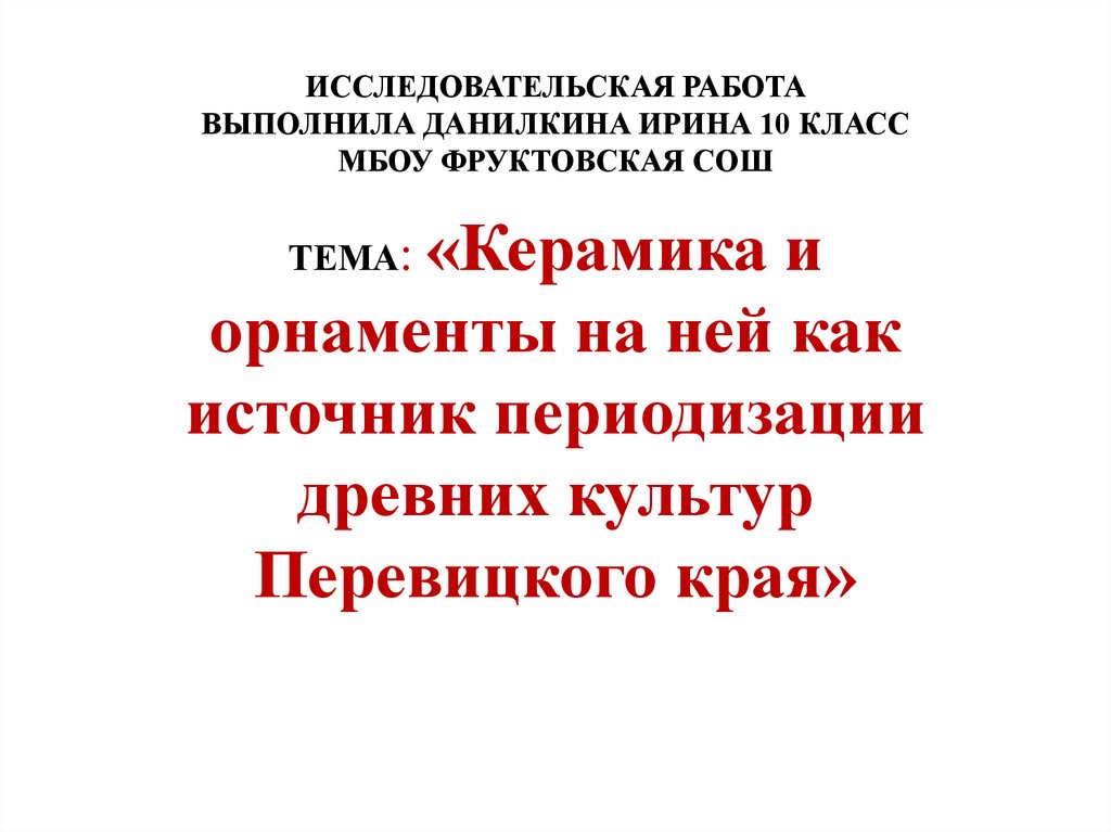 1. ИССЛЕДОВАТЕЛЬСКАЯ РАБОТА ВЫПОЛНИЛА ДАНИЛКИНА ИРИНА 10 КЛАСС МБОУ ФРУКТОВСКАЯ СОШ
