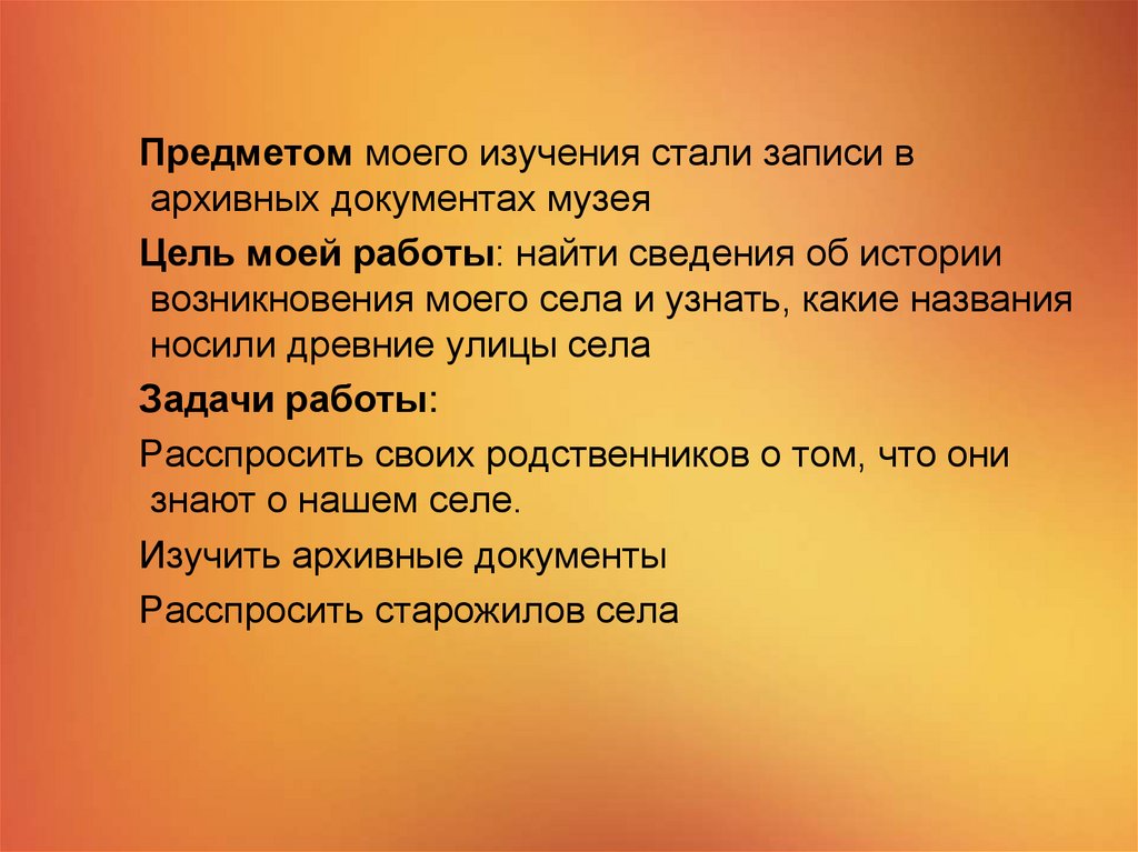 Цель моей работы: найти сведения об истории
