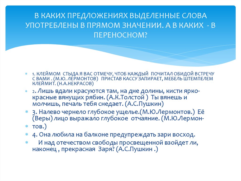 В КАКИХ ПРЕДЛОЖЕНИЯХ ВЫДЕЛЕННЫЕ СЛОВАУПОТРЕБЛЕНЫ В ПРЯМОМ ЗНАЧЕНИИ. А В КАКИХ - В